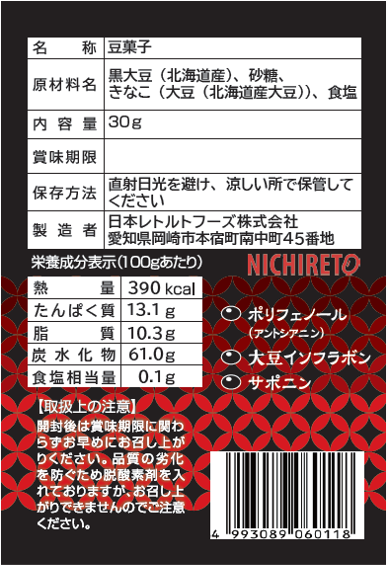 ①健康に良いと注目の栄養素を豊富に含む、黒大豆を使用。添加物は一切使用していませんので、安心してお召し上がりいただけます。