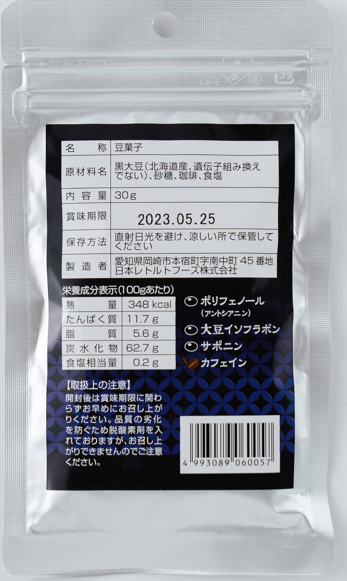 ①健康に良いと注目の栄養素である、ポリフェノール、大豆イソフラボン、サポニンを含む黒大豆を使用しており、添加物不使用です。